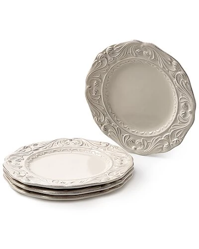 - Set of four ivory embossed stoneware dessert plates